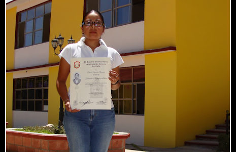 Licenciada Guillermina Zurita Paz, egresada de la Licenciatura en Derecho del Centro Universitario Luis Donaldo Colosio Murrieta obteniendo titulación automática por promedio superior a nueve.