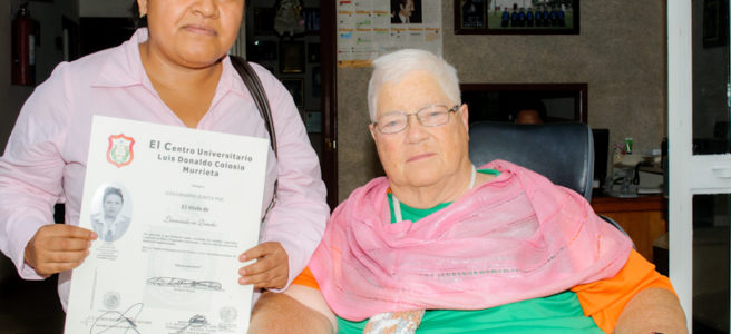 Licenciada Guillermina Zurita Paz, egresada de la Licenciatura en Derecho del Centro Universitario Luis Donaldo Colosio Murrieta obteniendo titulación automática por promedio superior a nueve.